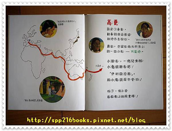 繪本有高更的生平介紹,也是重點是的說明