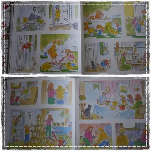 返回溫暖的住家,趕緊卸下溼透的衣裳,泡個熱水澡吧!媽咪在做晚飯,兩姊弟一起看著窗外的雨勢、搭積木,接著全家一起用晚餐、娛樂,時間就這麼過去了