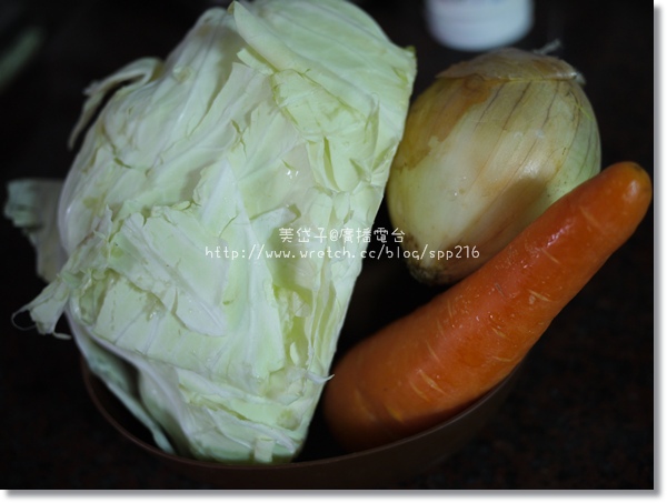 這三蔬是日常中很普通、常見、易取得的蔬菜-高麗菜、洋蔥、胡蘿蔔