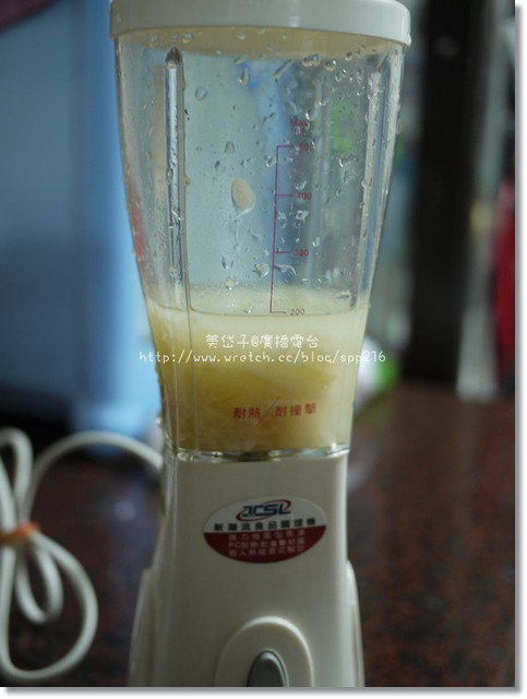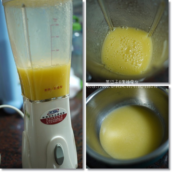 沒想到攪拌後的食物顏色意外美麗,阿乖一直問我是不是要用柳橙汁給妹妹喝,我搖頭他還不信呢!