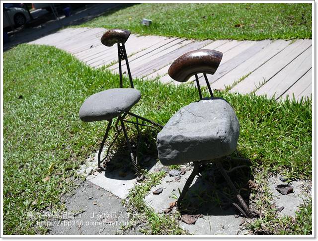 草皮上有二張石頭創作椅,阿乖說看起來很想外星人,讓他這麼一說,我突然也覺得...有像哩!