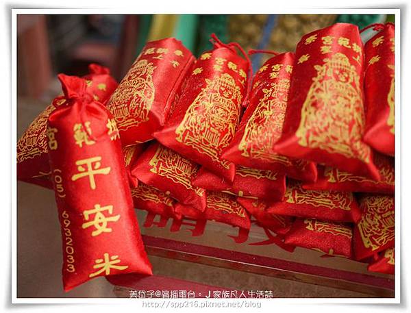 桌案前也有一小袋一小袋紅錦囊堆疊起的平安米,若想祈求平安也可取用之
