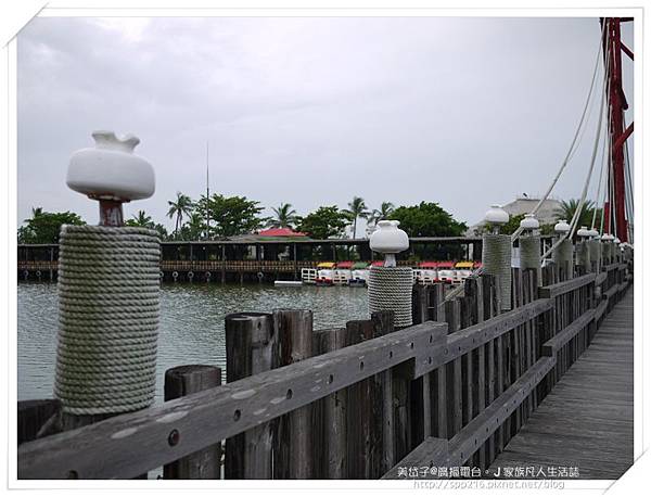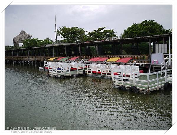 水岸邊停了一整排的遮棚天鵝船,這應該就是『腳踏船』吧
