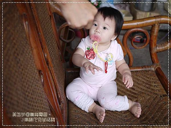 老爺拿了小木塊要給Jolin看,這麼小的娃兒會懂嗎?