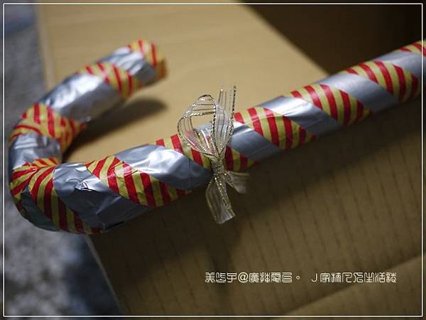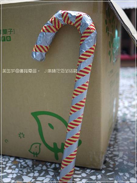 隔了一天,阿乖又說:「媽咪,你忘記做拐杖糖了。」我回應他:「放假時,時間比較多,那實再做就好。」沒想到他對我說:「我們班上最大的男生xxx已經交了哩,老師說,就請爸爸媽媽用報紙或不要的物品做拐杖糖就好。」老天!我直到那時才知道自己一直搞錯方向,以為阿乖要我做的可以吃的拐杖糖,原來並不是那麼一回事,是要小朋友的爸媽利用回收的資源去完成聖誕節的裝飾品。