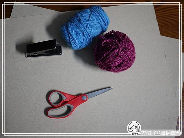 這次要玩的基礎用具很簡單,就是幾張回收的硬紙板(紙箱瓦楞板也可以)與毛線,工具是一把剪刀、一只打洞器