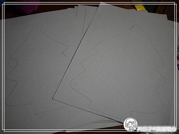 先在硬紙板上畫聖誕樹的模樣,隨個人喜愛,不拘固定形式