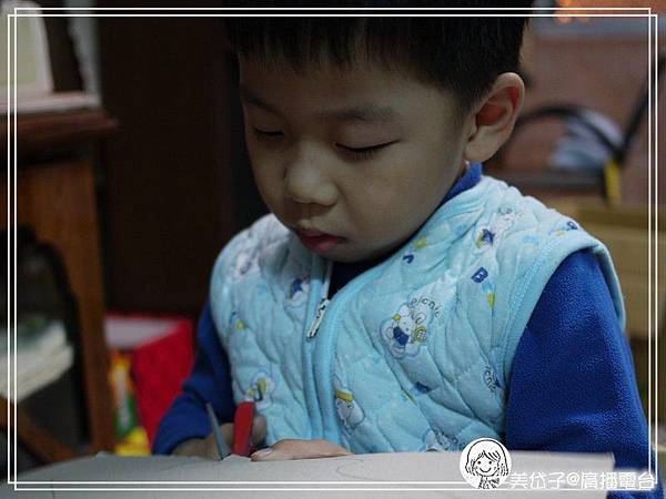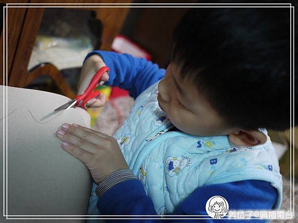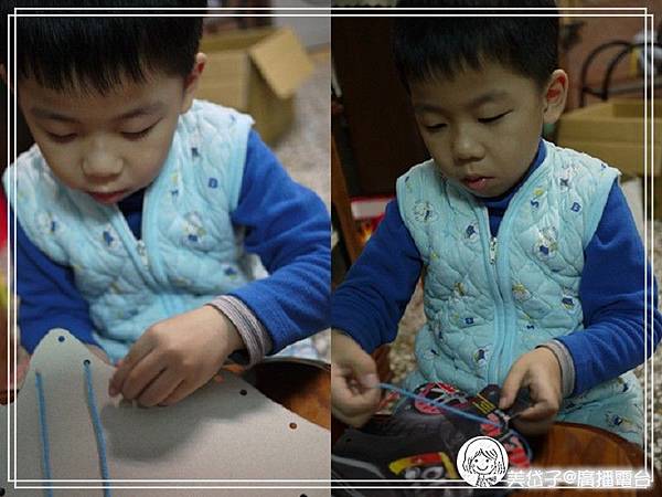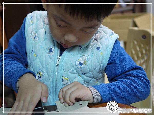 接下來就是要出動打洞器了,也是隨意的打動即可,我只要求洞要打好,順便教導阿乖如何操作打洞器,我看小孩子多愛打洞的遊戲,這樣訓練也可以喔