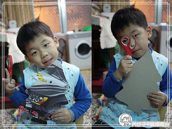因為是硬紙,轉彎、圓弧的地方較不好剪,屆此可以訓練小孩的手部細動作,也可以培養小孩的專注力喔