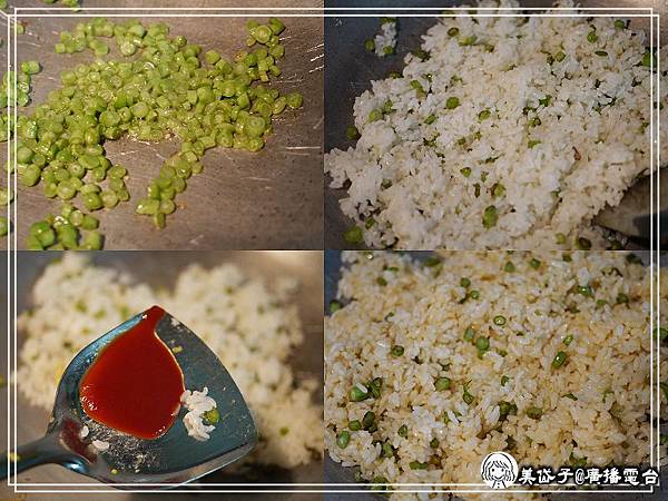四季豆先汆燙再入油鍋拌炒,後加入米飯與少許蕃茄醬拌炒均勻,蕃茄醬已有淡淡鹹味,不再加調味