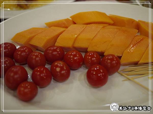 餐後水果-木瓜&小番茄,或許是因為盤子大,水果量不多因而顯得不夠大器,至於好不好吃...拍謝!我沒吃,沒法說著