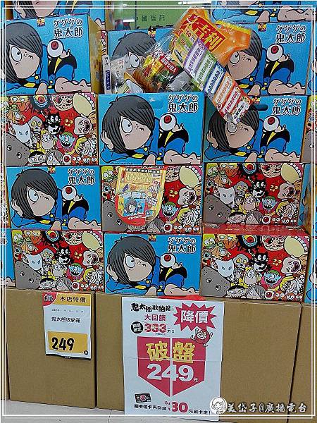 其實,我沒動過要買鬼太郎便利收納箱的念頭,那為什麼又會出現在我家哩?原因還不就是我家老爺要收納箱&裡頭的食品&折價券