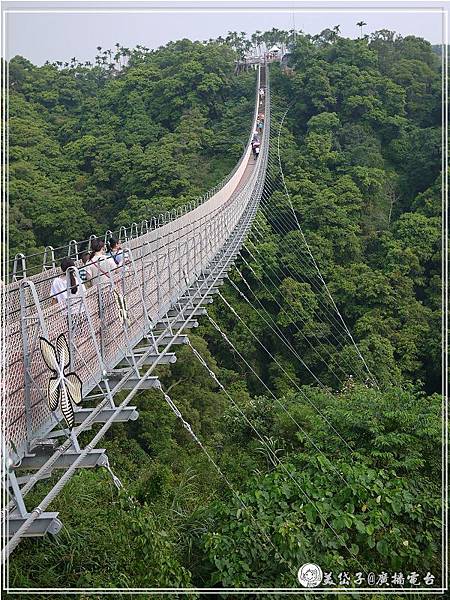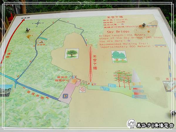 全長204公尺,共265階,階梯式的吊橋,目前應該是全台最長的梯子吊橋,建議步行路線(約800公尺)