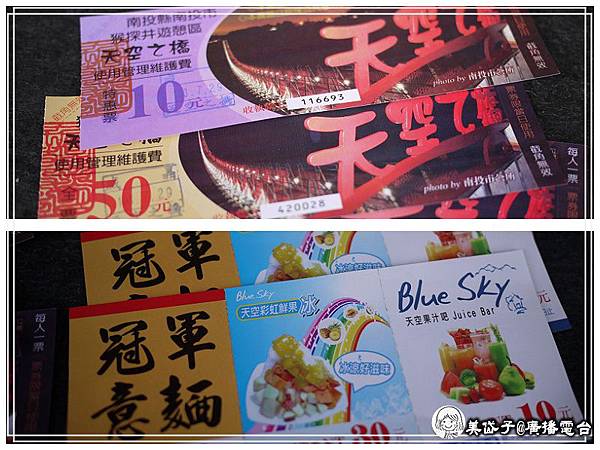 購票另有附贈餐飲折價券,適用在天空之橋遊憩區(在外停車時,停車場也有給餐飲折價券,適用天空之橋外的攤販商家)