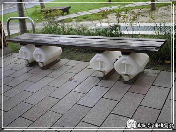 藝術大道上的行人坐椅,呵呵~塑膠桶基座
