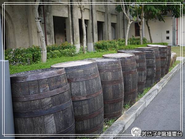 台中文化資管中心外有一列木桶,不論當初是用來裝什麼的,現在僅是裝飾用途