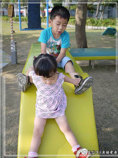 我家這對寶貝則是將曲線椅當成溜滑梯玩了起來