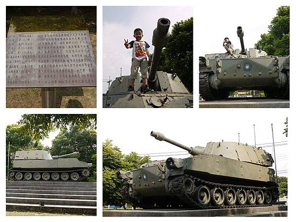 終於找到戰車和戰機!M108自走砲,但我僅管叫它「坦克戰車」,阿乖也樂著,非要登上戰車威風一番