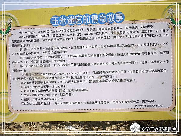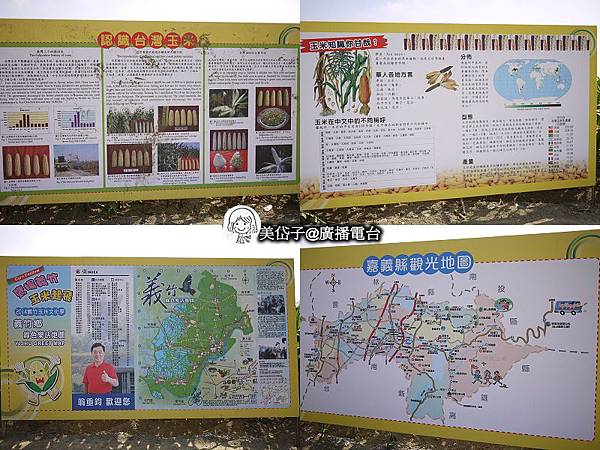 迷宮出入口四週有幾許看板立著(雖然有沾上泥土還是可見),除了有嘉義縣、義竹鄉的觀光地圖外,主角-玉米的相關知識也有詳細介紹(官網亦有介紹,有興趣者可以上網看看)