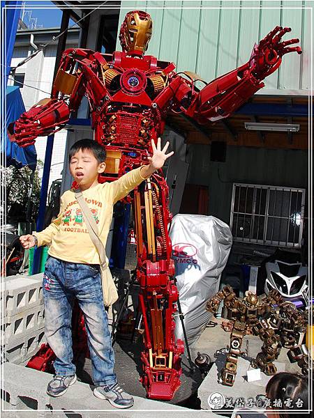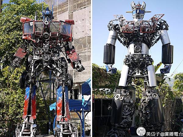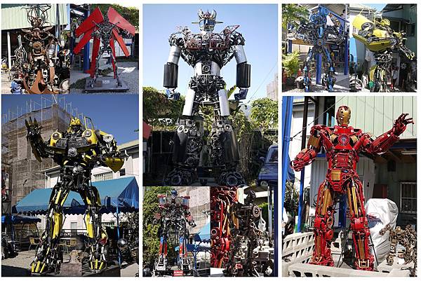 爬網得知:「金鋼基地」是一個疼愛兒子的父親,因為兒子超級喜愛「變型金鋼」電影而開始以廢棄建材與報廢的迷你奧斯汀汽車,陸續動手打造超過四公尺高的機器人,一圓寶貝兒子的金鋼夢(科博文與大黃蜂)