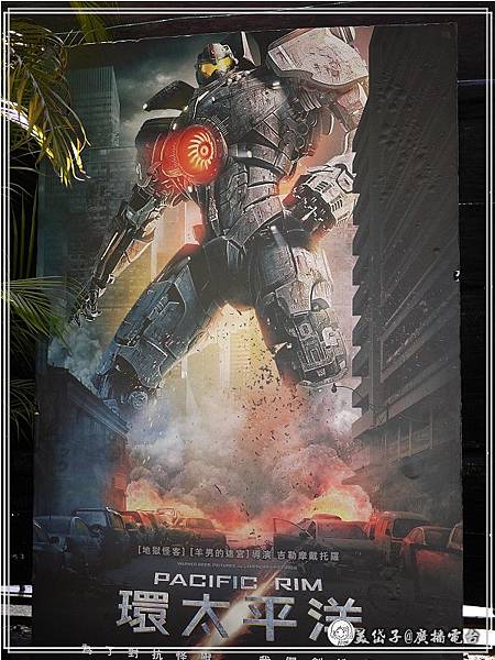 基地裡有幾張大型電影海報看板,當然都是和機器人有關,鋼鐵人、環太平洋等,而變形金鋼是一定有的