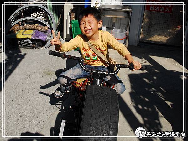 基地還有一部可以騎,會動、會搖,不會走的鋼鐵機車,超好玩,我們都玩上癮哩(只有云云害怕,不曾坐上)