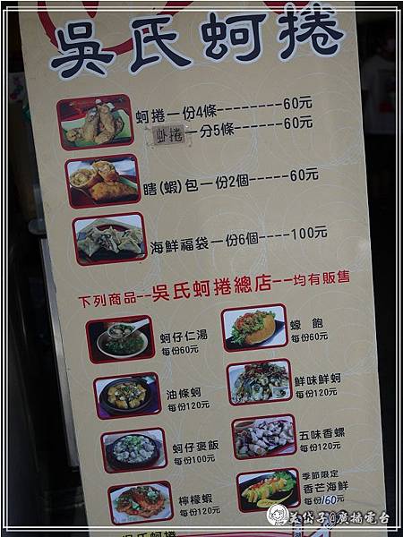 菜單看板,每一款看起來似乎都不錯,瞎(蝦)包、蠔飽這名字取得不錯