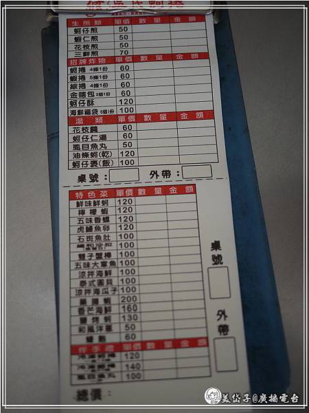 取了菜單,簡單的點餐,三盤蚵仔煎外加一碗虱目魚丸湯,這就是我們一家的午餐