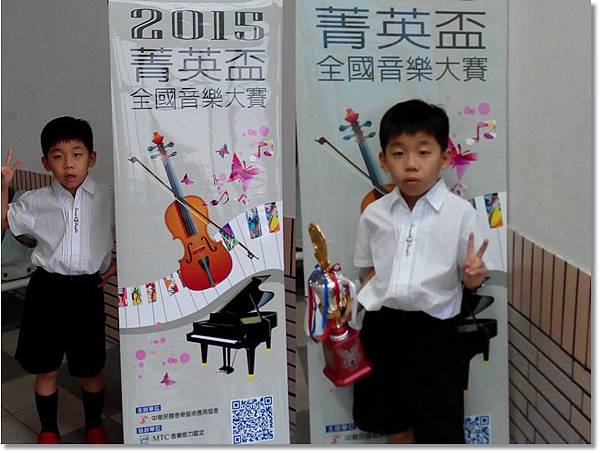 等待成績公佈的時間裡,阿乖已經和一號參賽者混熟了,同樣的年紀喜歡的都是相似的吧!成績一公佈,果然,第一名就是那位一出場架式就特別不一樣,也是唯一彈奏時間3分鐘到了尚未表演完的參賽者,那男孩真的超級沉穩,若套到古時候來看,阿乖就彷若是那公子身邊的小廝,第一名的參賽者就是玉樹臨風的翩翩公子(我真的不是要貶低自己的孩子),阿乖目前最大的問題就是浮躁、靜不下來,雖然他也拿了優等獎!