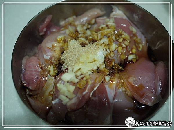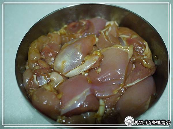 嘿嘿~就是幫雞肉按摩!當然這是好聽的說詞,隨便一些就說是抓一抓,但是我堅持用「按摩」的字眼,用真心真意按摩過的雞腿肉質會比較Q嫩