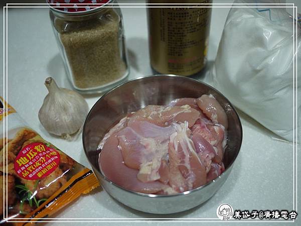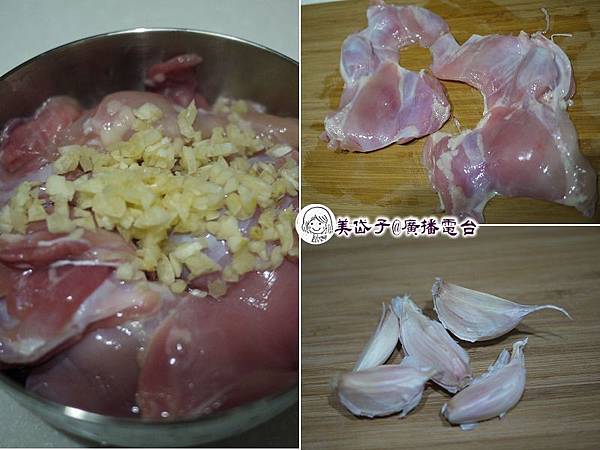 準備食材:雞腿肉2片(不是做香煎腿牌,所以去除雞皮)、大蒜5瓣