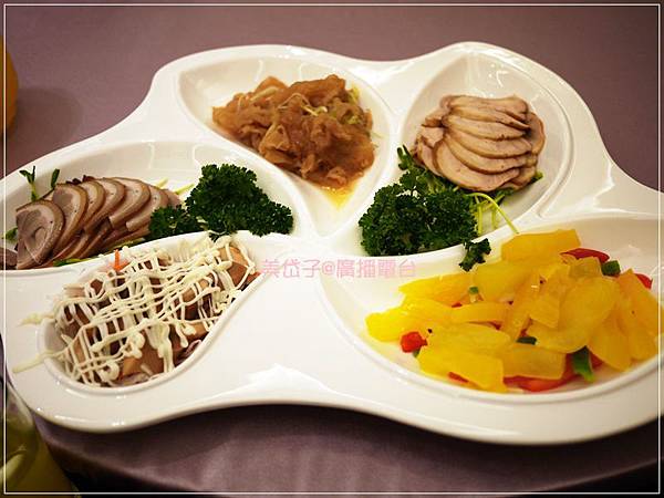 鴻運五福臨門~海蜇皮,火腿肉,鴨肉,蒟蒻(右下角,黃色),另一則是忘記是什麼了(上有莎菈醬者,記憶力超差的!)