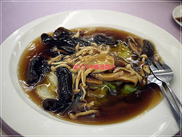 菌菇烏參扒鲍片~普普,色香味皆顯弱,烏參和鮑片的份量似顯不夠大器,這道遜了!