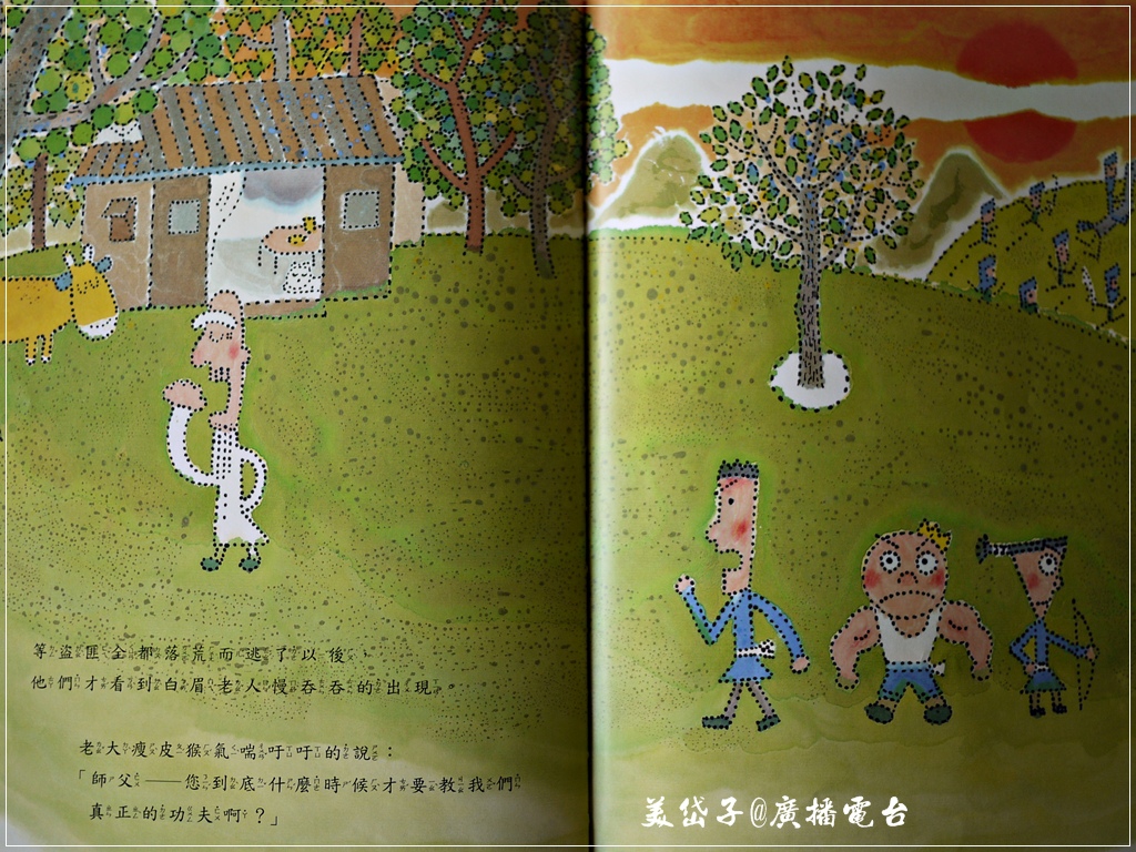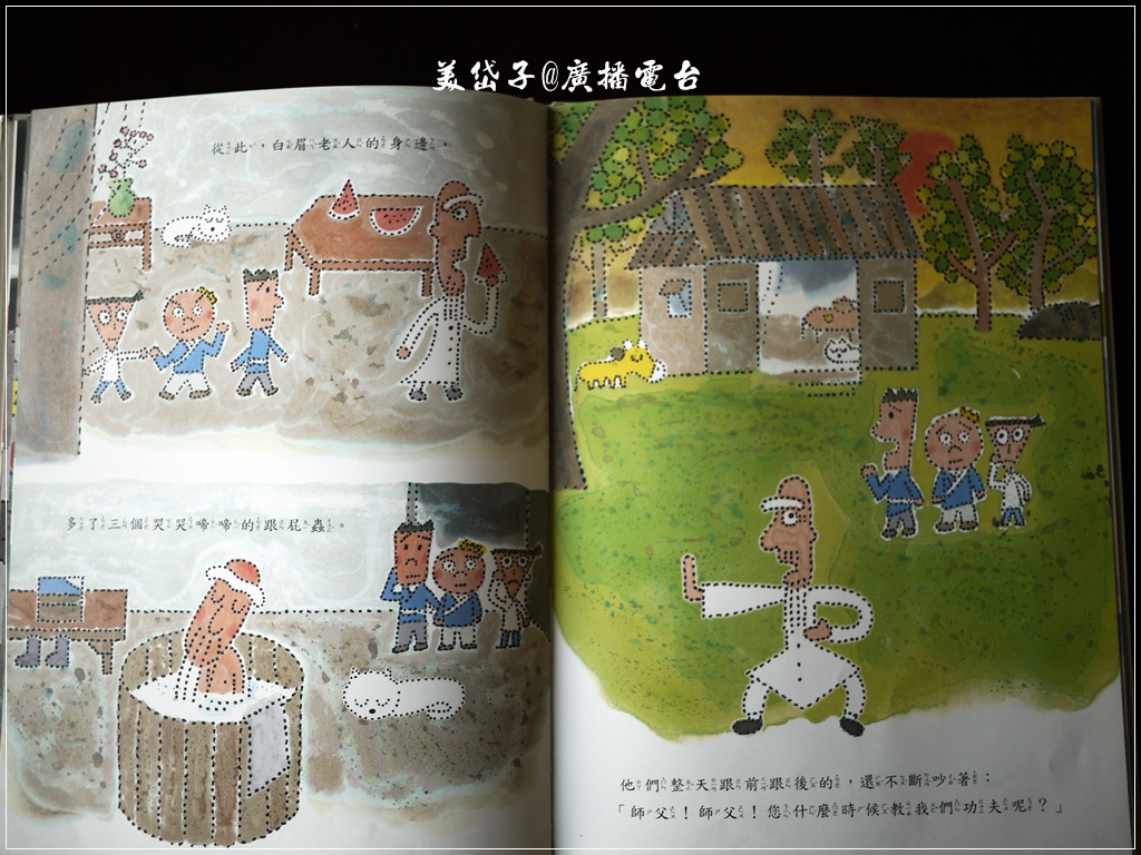 當初看了這繪本覺得很可愛,挺適合阿乖看,剛好那陣子倆兄妹吵著說要學跆拳道,學些拳腳工夫不是壞處,除了強健體魄外,也有防護的作用,但是,學習跆拳道和學習真正的功夫是一樣的,不是只有招式的練習讓外表相看起來很厲害,而是日積月累的身心體魄鍛鍊,當然這也是一種生活的態度(學習之道在於勤,學習任何功夫、才藝、手藝通通都是的)。