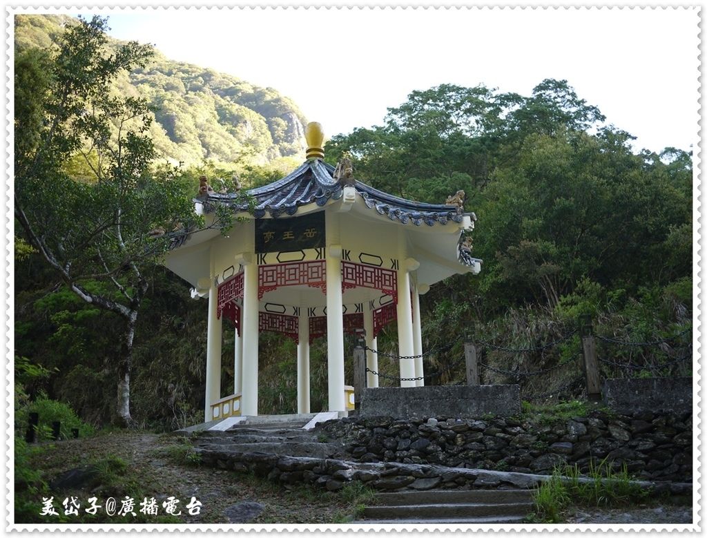 緊鄰立霧溪另一側的高地上,有座「岳王亭」涼亭,綠頂白柱