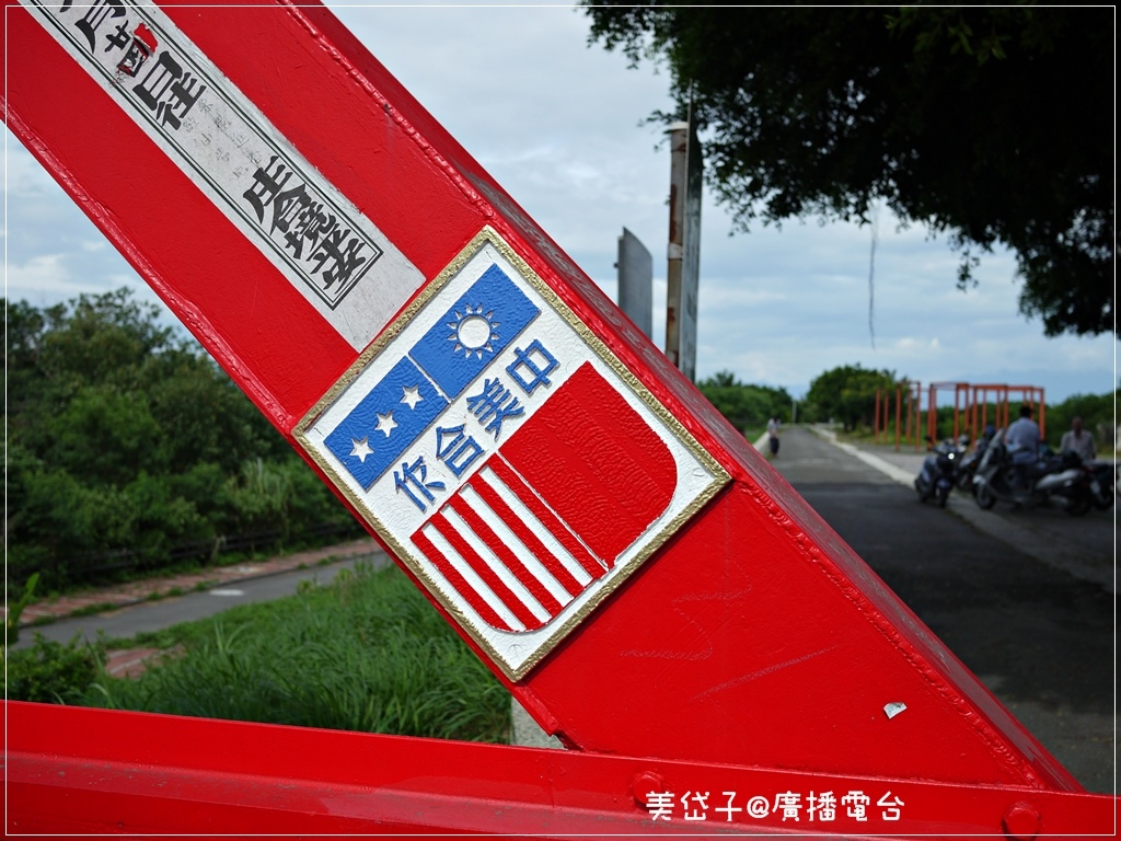 橋頭西邊是三國國旗,橋頭東邊則是阿兵哥的站哨亭,雖已廢棄不用,對小孩子來說還是很有趣味性的