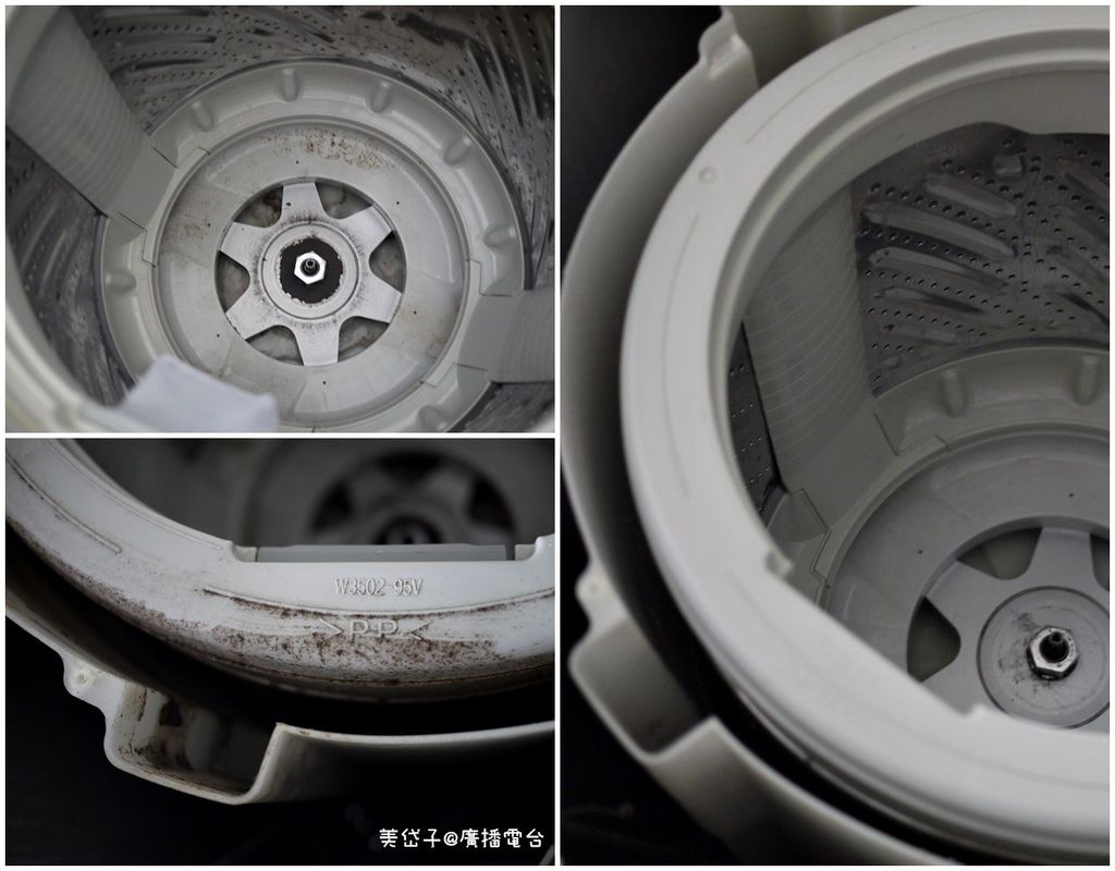 還沒看到洗衣槽,就看這片(上上圖W9502-95V的那一片)的狀況,似乎就懂了一半,凡是上下被遮蓋的內部,都是平時清潔時「必定」清洗不到的地方