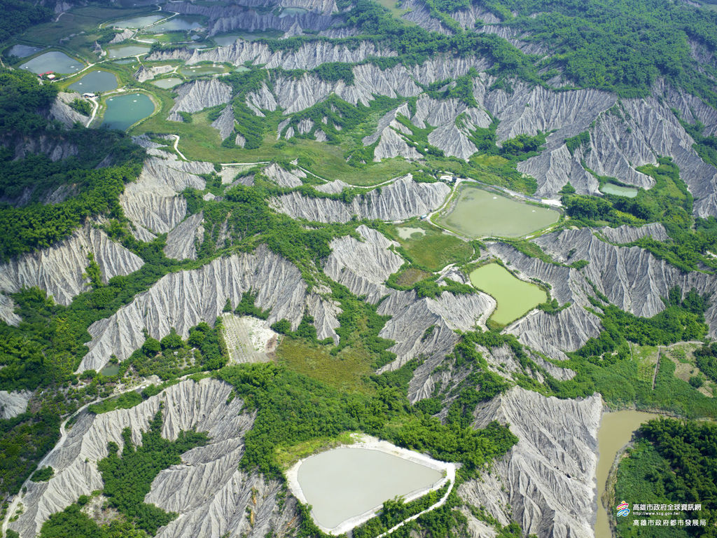 田寮「月世界」特殊景觀在地理學上稱為「惡地」,是由於地殼的「回春作用」,經年累月的經由雨水與河水強烈侵蝕,將泥沙堆積在泥岩上,地層變動後,泥沙更與泥岩混合再經由風化、沉積作用,形成今日地貌,僅適於耐旱、耐鹽的淺根植物(如:箭竹)、濱海植物生長。從田寮到旗山台28線沿路除了月世界景觀,還有大小不等的二十多個泥火山,常呈現間歇性的噴發現象,噴發的規模則視地底天然氣與泥漿的累積壓力而定,噴發後的泥流堆積地區,經降雨沖蝕,產生一些特殊的小地形,其中大滾水與小滾水是觀察泥火山最方便的地點。泥火山是地下的天然氣、泥漿受高壓作用,沿著淺層岩體裂縫噴出地表的「假火山」,它也是惡地形的一種。田寮是全臺惡地形與泥火山最發達的地區,古亭坑層泥岩構成的惡地景觀,充滿淒涼荒漠之美,宛如未經人工鑿斧的地質生態教室,更發展出特有物產和美食。 (摘自:高雄旅遊官網)