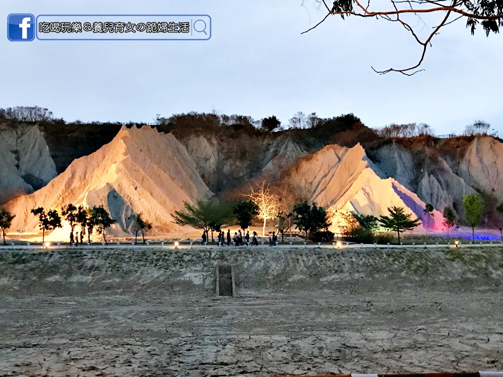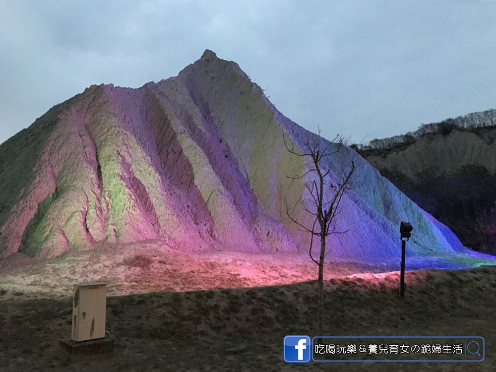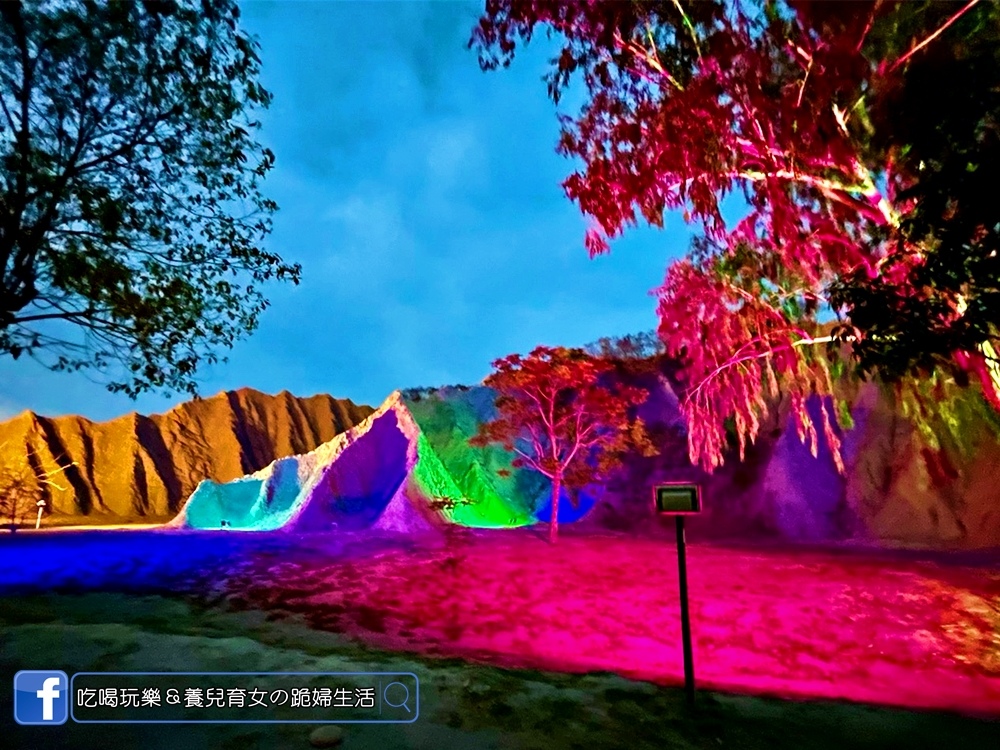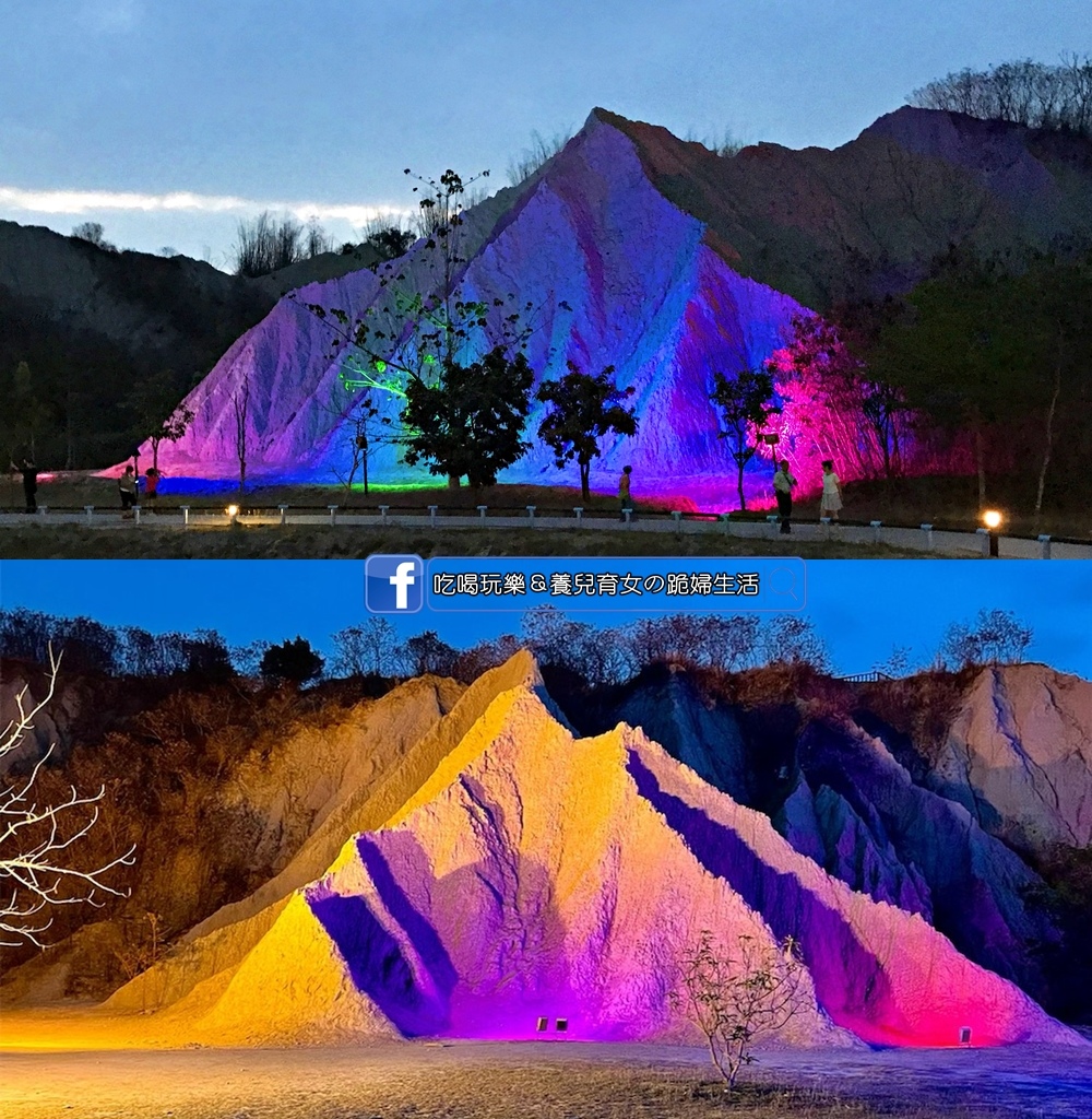 月世界景觀公園是全天候開放,有看過夜間彩幻燈光照亮泥岩映在湖面上的美景,日夜不同美麗丰采,一是純色乾淨、一是瑰麗妖豔