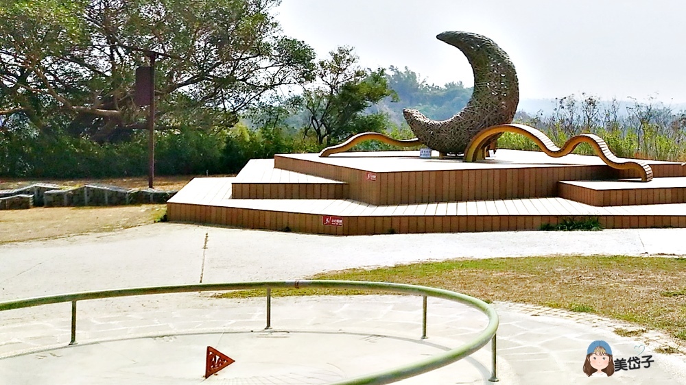 弦月觀景台到嘍!這裡除了有竹編公共藝術的弦月造景外,還有十二星座的日晷,又是月又是日的,頗有「日月爭輝」的概念。