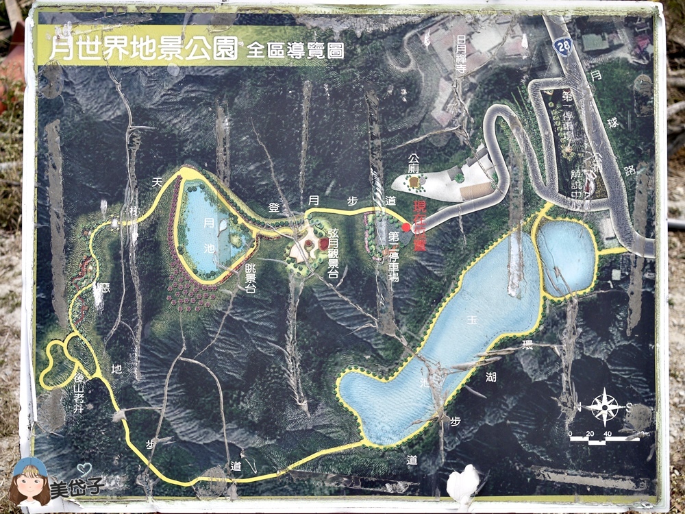 靠近一點看,解說中心前這條路就叫月球路,今日的目標~月球公園、登月步道、弦月觀景台、月池、156階天梯,GO!