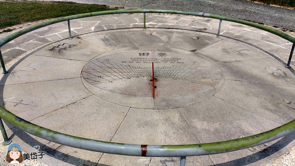 比起大型弦月藝術造景觀景台,十二星座日晷顯得嬌小,將時間刻度改以星座符號替代,中心則是地球經緯度的刻劃。