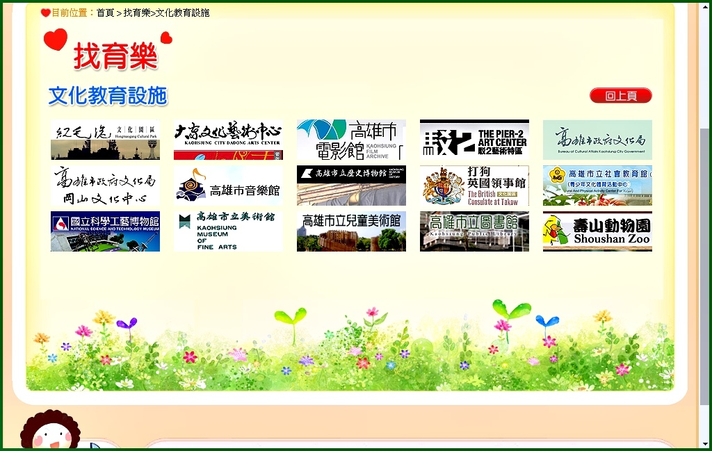 「文化教育設施」中的市圖、美術館、兒美館、大東文化藝術中心...等都是適合帶孩子一起去的【無料好點:免費的好遊點】