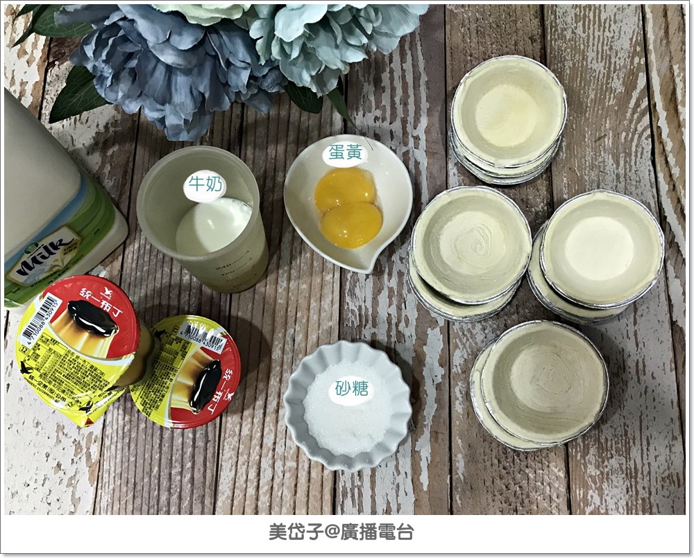 上回同事來家裡做蛋黃酥,留下幾個蛋塔酥皮,一直放在冷凍庫,前些時日沒處理,上週六阿乖去上外語、小妞去上音樂,我就利用時間來將蛋塔酥皮解決吧!