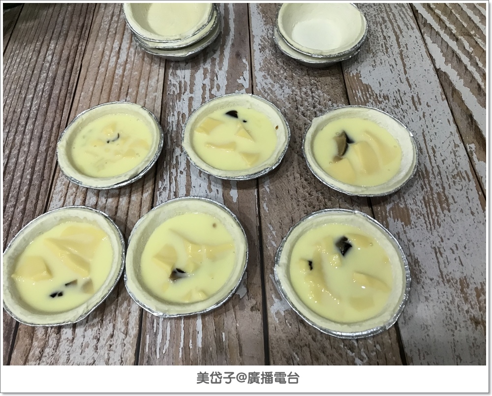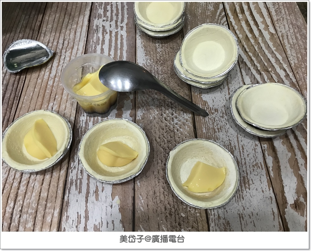 挖布丁餡到蛋塔皮中(一個布丁分裝5-6個蛋塔剛剛好)