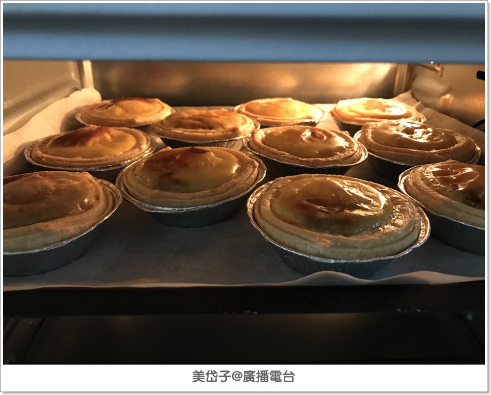 從烤箱取出熱騰騰的布丁蛋塔是澎的,待冷卻的過程會發現~餡料退縮嘍!