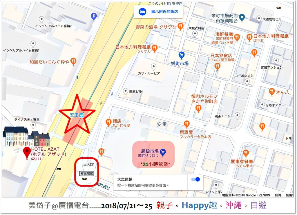 第一天抵達沖繩,選擇的下榻地是那霸的Hotel AZAT(阿札特飯店),當初會選擇「阿札特」的原因除了是親善飯店(12歲以下兒童不加床可以免費入住)外,另一原因是佔地點的優勢。沖繩位在電車站旁的飯店其實還不少,不過阿札特飯店前有間24小時營業的超級市場和居酒屋就是加分的選項。