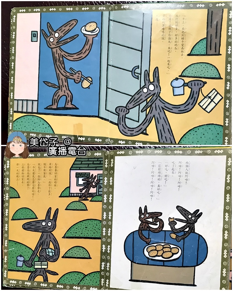 顛覆傳統大野狼狡猾、自私又貪心的印象,故事中的烏魯不僅懂得分享還很健忘,烏魯的好朋友也都很樂意分享,詼諧逗趣的角色總有讓人會心一笑的表現,有時候還能讓孩子插上一腳,思考、數數、眼力觀察......等等,孩子很有參與性