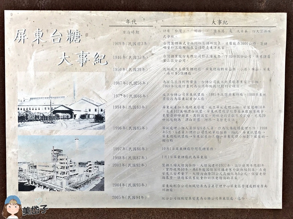 角落有屏東糖廠大事紀的小看板介紹