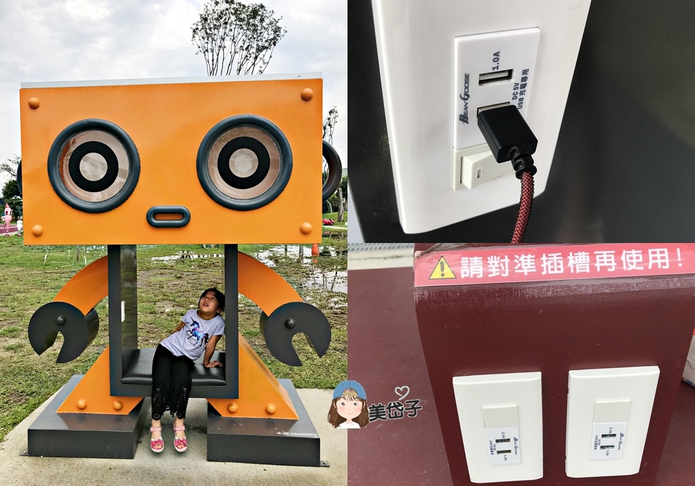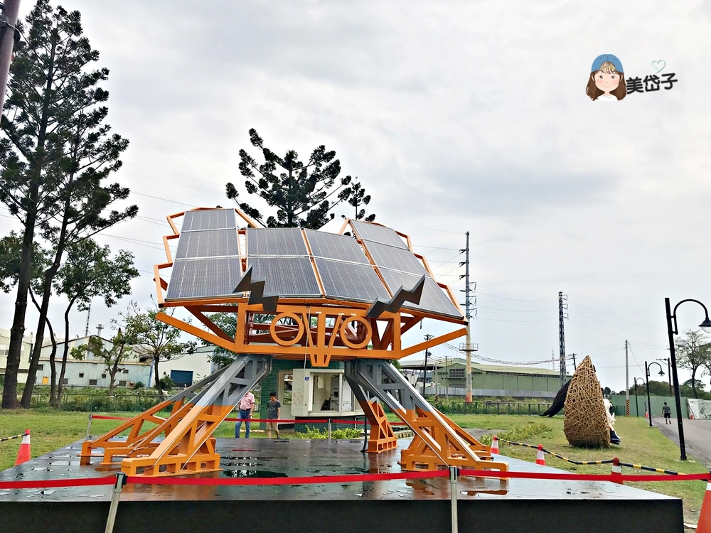 最讓人意外的是,不論「太陽之子」還是「電光蟲」,除了提供民眾休憩乘坐外,還是綠能燈組,夜晚不僅點亮縣民公園,還能提供民眾USB充電(另有一組「曬太陽毛毛蟲」綠能燈組),有夠讚